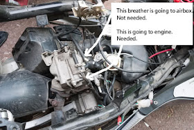 edit: näin jälkikäteen selvisi että tuo huohotinletku on ihan tarpeellinen, muttei sen tarvitse mennä mihinkään ilmansuodattimen boxiin. Riittää että se huohotinletku löytyy ja vaikka roikkuu kohti maata. Pitäähän sylinterin venttilikoneiston lisäksi moottoritilankin päästä hengittämään. Kun mäntä menee ylös alas, niin moottoritilan ilmamäärä vaihtelee. Ja huohotinletku moottoritilasta hoitaa tämän.
