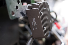 Skootterin moottori on Hondan lisenssillä tehty kloonimoottori. Ja ettei tarttisi vanhan regulaattorin liittimiä ryhtyä pätkimään ja arpomaan että mikä menee mihinkin, niin päätin etsiä Hondiin sopivia regulaattoreita. Löytyikin sopiva Honda CH125 CH250 yhteensopiva regulaattori, jossa on identtiset liittimet oman skootterini regulaattorin liittimien kanssa.