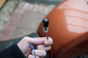 Sitten jäi hyllyyn vielä Gammatronix led volttimittari. En oikein vielä saanut ideoitua että mahtuisiko se sarvien viereen. Ikäänkuin samaan paikkaan missä ryyppyvipu on, mutta toiselle puolelle. Vähän siinä on ahdasta, niin saattaa olla että jää volttimittari asentamatta. Tai sitten myöhemmin uudelleen.