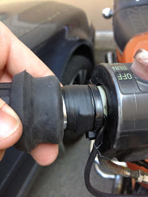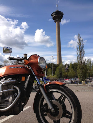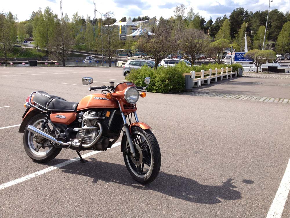 Tarkkasilmäisimmät varmaan huomasivat että vasemman puolen sivumuovista on pudonnut cx500 logo hukkaan. Tiesin että se on vain toisella kahdesta tapistaan kiinni. Yksi päivä käytiin kauniimman osapuolen kanssa ajelulla ja ilmeisesti sopivasti jalka tai kenkä hieraissut sitä logoa ja se tippui matkalle. Reitti oli 80km pitkä. Että harmitti. No sellaista sattuu. Kävin seuraavana aamuna ajamassa sen saman reitin yksin hissukseen uudelleen, muttei sitä tietenkään löytynyt. Saksan ebaysta sitten voitin järkihintaan setin jossa on molempien puolien muovit ja kummassakin cx500 logot paikallaan. Hyviä varaosia tulevaisuutta ajatellen.