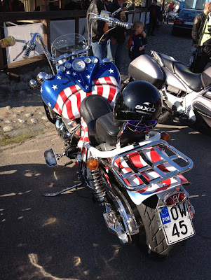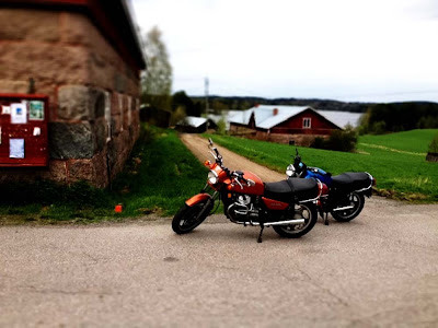 Pahoittelut kuvamäärästä, mutta lähinnä itselleni muistokuvat tässä napsin. Tietää miten hyvässä loistossa pyörä on parhaimmillaan ollut. Aikomus on pitää sitä toki yhtä hyvänä loppuun asti. Kuten kuvista näkee, niin pakoputkien etuputket ovat aika ruotoisessa kunnossa. Naarmuja ja ruosteenpoikasta tuuppaa. Jossain vaiheessa ehkä tekisi mieli vaihtaa ne uusiin. Uudet saa 45 eurolla + postikulut davidsilversparesilta. Toisaalta vanhat toimii vielä ja ne saattaisi saada nätiksi thermotec teipillä. No jos tämä kesä näin.