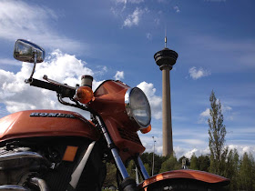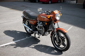 Tarkkasilmäisimmät varmaan huomasivat että vasemman puolen sivumuovista on pudonnut cx500 logo hukkaan. Tiesin että se on vain toisella kahdesta tapistaan kiinni. Yksi päivä käytiin kauniimman osapuolen kanssa ajelulla ja ilmeisesti sopivasti jalka tai kenkä hieraissut sitä logoa ja se tippui matkalle. Reitti oli 80km pitkä. Että harmitti. No sellaista sattuu. Kävin seuraavana aamuna ajamassa sen saman reitin yksin hissukseen uudelleen, muttei sitä tietenkään löytynyt. Saksan ebaysta sitten voitin järkihintaan setin jossa on molempien puolien muovit ja kummassakin cx500 logot paikallaan. Hyviä varaosia tulevaisuutta ajatellen.