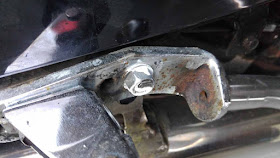 Akun takaa paljastui yllätys, että akku on jo luultavasti edellisellä omistajalla pikkuhiljaa kiehunut ja ruostuttanut hapollaan metalliosia. Onneksi noista saa vielä hyvät. Talvella teräsharjaa laulamaan ja ruosteensyöjää päälle ja sitten mustaa hammeritea. Hyvä tulee vielä.