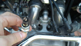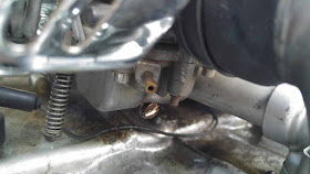 Samalla huomasin vahingossa, että joku edellisistä omistajista on korkannut öljypultin reijästä kierteet ja tehnyt siihen helikoil tyyppiset kierteet. Hyvä juttu, sillä nuo teräsjousesta tehdyt kierteet ovat tunnetusti paljon kestävämpiä, mitä valettuun pehmeään lohkoon tehdyt kierteet, jotka korkkaavat helposti. Ihan kiva näin, niin ei itse tarvitse tähän ryhtyä koskaan.