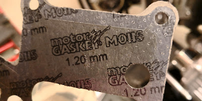 Toiselta puolelta tiiviste näytti siltä, että pahvi oli irti metallin vierestä. Ehkä siihen on tullut hiuksen hieno ura, josta neste pääsi hijalelen tihkumaan kylmässä moottorissa sylinteriin.