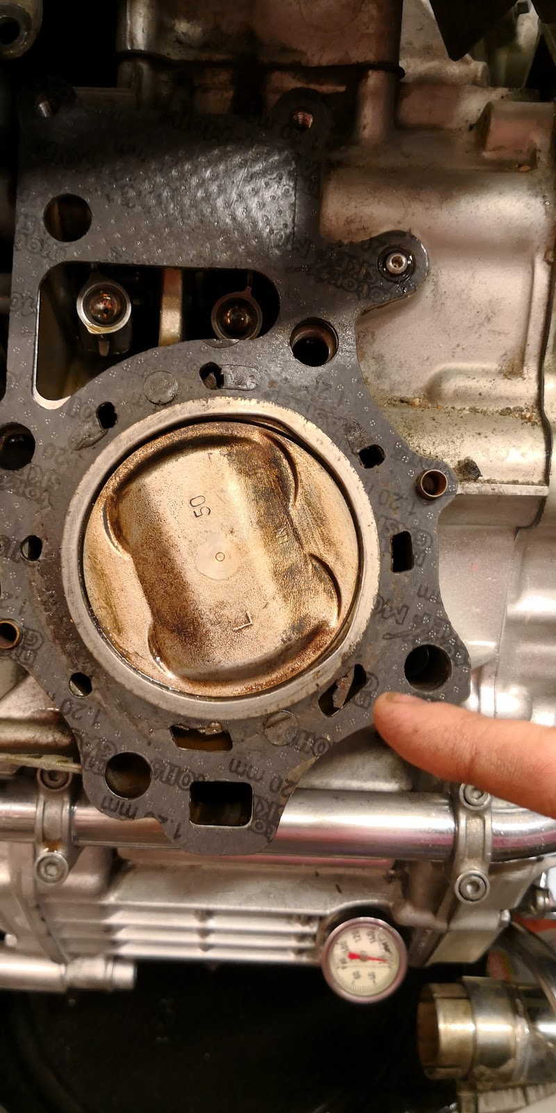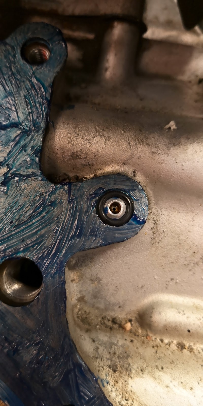 Toinen syy on voinut olla kannen pulttien koloissa oleva öljy. Kaikissa kannen pulttien koloissa oli öljyä ihan liiaksiin. Jos koloissa on nestettä ja yrität sinne ruuvata pulttia, niin selväähän on, ettei se pultti kierry niin pohjaan asti, kuin ehkä on tarkoitus. Tämä tarkoittaa, että kansi ei tule momenttiinsa.