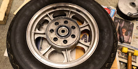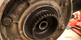 Hammaslaipan alla vanteessa on kuminen kiekko, joka toimii tärähdystenvaimentajana kun voimansiirto kardaanista iskee siirtovoiman vanteelle. Kumi ja sen alunen olivat pölyisiä ja likaisia. Hyvä puhdistaa kaikki pois ja puhtaana koota uudelleen.