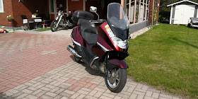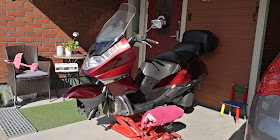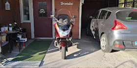 Vielä kaverikuva prätkästä ja skootterista, ennen kuin prätkä menee uudelle omistajalle. Sitten eletään ainakin jonkin aikaa pelkkänä skootteristina.