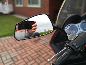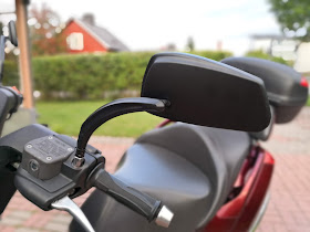 Päädyin ostamaan Motonetista 50 eurolla parin mustia metallisia suuria peilejä. Se osoittautu täydelliseksi ostokseksi. Peilit ovat niin isot, että niillä näkyy hyvin taakse. Kupera peili vielä antaa kunnon laajakulman. Yksi peili näyttää käytännössä kolmen kaistan leveydeltä per puoli.