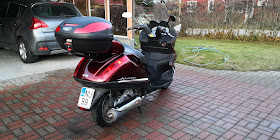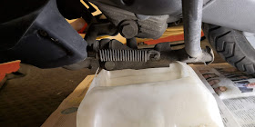 Onneksi öljynvaihto tapahtuu noin kerran vuodessa itselläni. Täytyy ensi kerralla suunnitella tuohon foliosta sellainen suoja, josta muotoilee kourun, jota pitkin valutaa öljyt pois. Samoin piti Kawasaki VN750 customiin tehdä foliosta kouru, tai olisi öljyt valuneet suoraan starttimoottorin päälle. Kehnoa suunnittelua sanoisin. Brake cleanerilla tuo silti tuosta helposti puhdistuu.