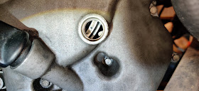 Venttiilinkopan tiivisteen puhdistin ja laitoin kummallekin puolelle blue hylomar tiivisteliimaa, jotta ei vanha tiiviste ala vuotamaan öljyä alleen.