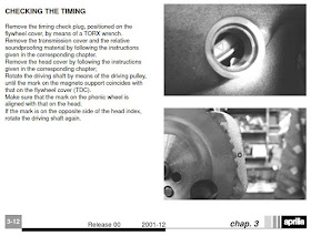Ajoitusmerkki oli manuaallin kuvasta poikkeava. Ei ollut vauhtipyörässä nuolta, vaan oli pallura.