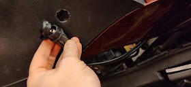 Korkki on muovia ja torx mallinen. Piti käydä ostamassa oikean kokoinen torx avain kokoa T55.