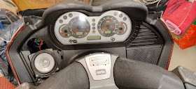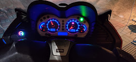 Kuinka osuikin sävyt hyvin yks yhteen mittariston valojen kanssa. Jännitemittari on oikein mukavasti samoissa sävyissä ja ajossa näkee, että lataako tarpeeksi, vai onko tulossa jotain orastavaa vikaa akulle tai jännitteensäätimelle.