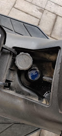 Katteita vasemmalta puolelta auki ja öljynsuodatin vaihtoon. Itse öljynvaihdossa tehtiin aluksi virhe ja lisättiin öljyä reilusti liikaa. Ei saisi koskaan olettaa, että joka pyörässä on öljynvaihto samalla tavalla.