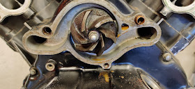 Vesipumppukin on ilmeisesti valuttanut juorureijästä, koska vesipumppu oli ihan jumissa ja osat hajoilivat melkein itsestään kun purki hommaa auki. Jäähdytysneste oli ruosteisen väristä.