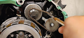 Samalla TL yläkuolokohdan asennossa säädin myös manuaalisen jakoketjun kiristimen.