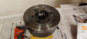Nyt tuli tarvetta sille toiselle moottorille. Sitä purkamaan ja sieltä irroittamaan magneeto tähän tarpeeseen. Onneksi oli varamoottori. Magneetojen hinta pyörii aika korkealla käytettynäkin.