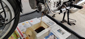 Moottorille annoin sisäpesun ennen öljynvaihtoja. Itse ostin motonetista Motox moottorin sisäpesuainetta. Sitä ohjeen mukainen määrä moottoriin moottoriöljyjen sekaan ja pyörä käymään pihalle joksikin aikaa. Sen jälkeen öljyn valutus pois ja öljyjen sekä suodattimen vaihto.