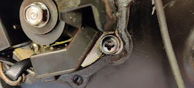 Ei oltu varmoja onko moottoria koskaan avattu, mutta täältä se selvisi heti. Kyllä on. Ruuvinpäitä on nylppääntynyt ja yksi ruuvi ruostunut ja erilainen, kuin toinen vastaava.