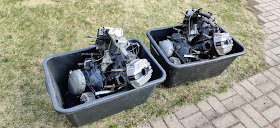 Lähdemme kunnostamaan tätä jälkimmäistä. Toinen moottori on mukana lähinnä elintenluovuttajana, mikäli tarvitsee jotain hajonnutta korjata ehjällä.