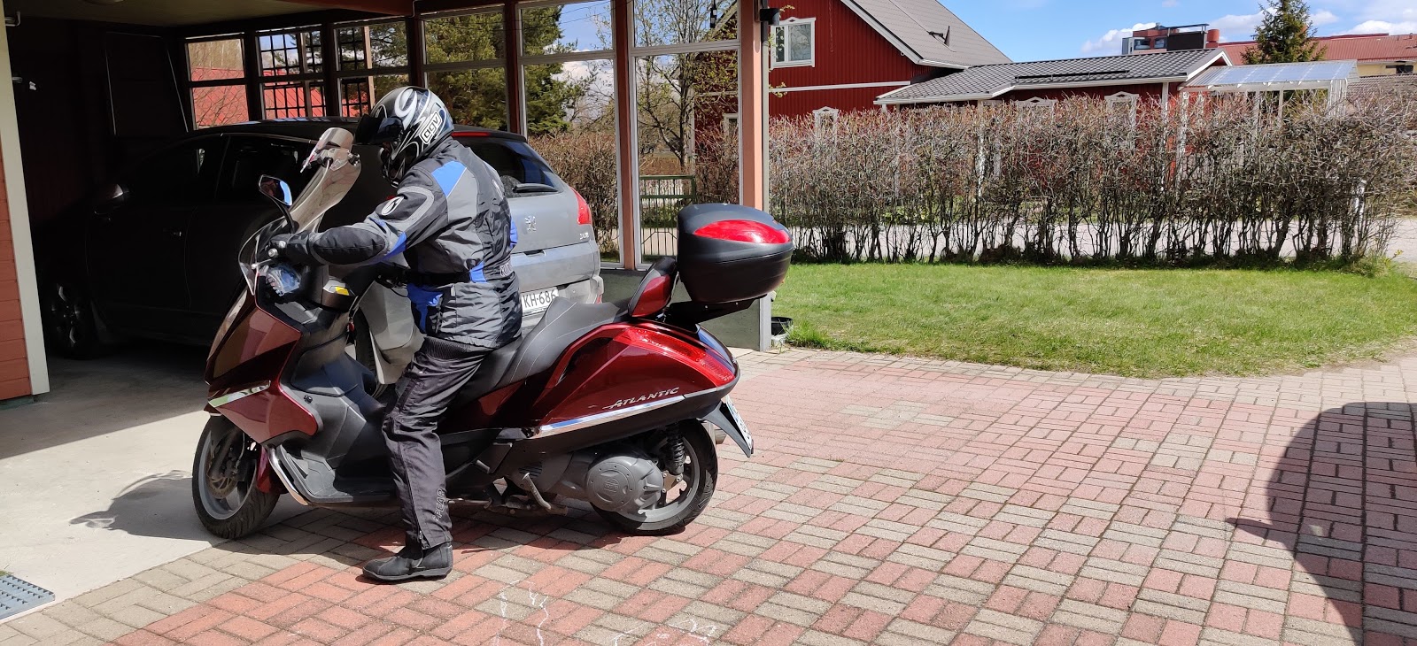 Tenniskyynerpää alkaa helpottamaan vihdoin ja heti hirveä prätkäkuume alla. Skootteri oli vain väliaikainen ratkaisu, kun kytkinkädestä ei ollut mihinkään. Nyt siitä taas on.