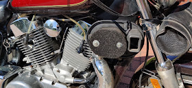 Sitten ilmansuodattimet. Koska lie pesty tai vaihdettu. Ne on nämä molemminpuoliset kromatut kopat tankin alapuolella.
