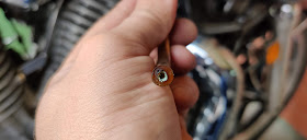 Ei ollut ihan helpot irroittaa verrattuna aikaisempaan VN750 pikkuvulcaniin. Siinä oli kaksi näkyvää ruuvia. Tässä oli kolme pulttia takapuolella, joiden irroittaminen oli melko ahdasta puuhaa. Hankalaa, mutta se onnistuu.