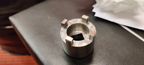 Ja toki jos pyörität tuosta, niin koko kytkin pyörii ja irroittamiseen tarvittaisiin sellainen lukitustyökalu. Mutta tähän on toinenkin kikka. Pyörä keskijalalle. Vaihde päälle ja poljet jalkajarrua samalla kun väännät tuota kruunumutteria auki. Tällöin takapyörän jarru lukitsee kardaaniakselin avulla moottorin ja kytkimen pyörimisen. Kätevää.
