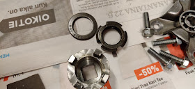 Toinen huomioitava asia. Kytkimen kruunumutteri pitää saada oikeaan manuaalin mukaiseen kireyteen, jottei se aukea ajossa ja sinkoile koneen sisällä.