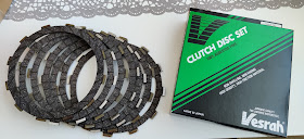 Kaupasta uudet 10-15% jäykemmät EBC kytkinjouset. EBC kytkinpaloja ei ollut tarjolla, niin tilalle tuli Vesrah kytkinpalat, jotka on  myös made in japan.