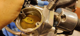 Osat takaisin nippuun ja homma valmis. En tiedä onko kuvitelmaa, mutta kytkinkahva tuntui hieman kevyemmin luistavalta nyt. Voi olla että vanhassa nesteessä olli jo hieman kitkaa aiheuttavia epäpuhtauksia. Homma on työnä niin helppo ja halpa, että se kannattaa suorittaa säännöllisin väliajoin.